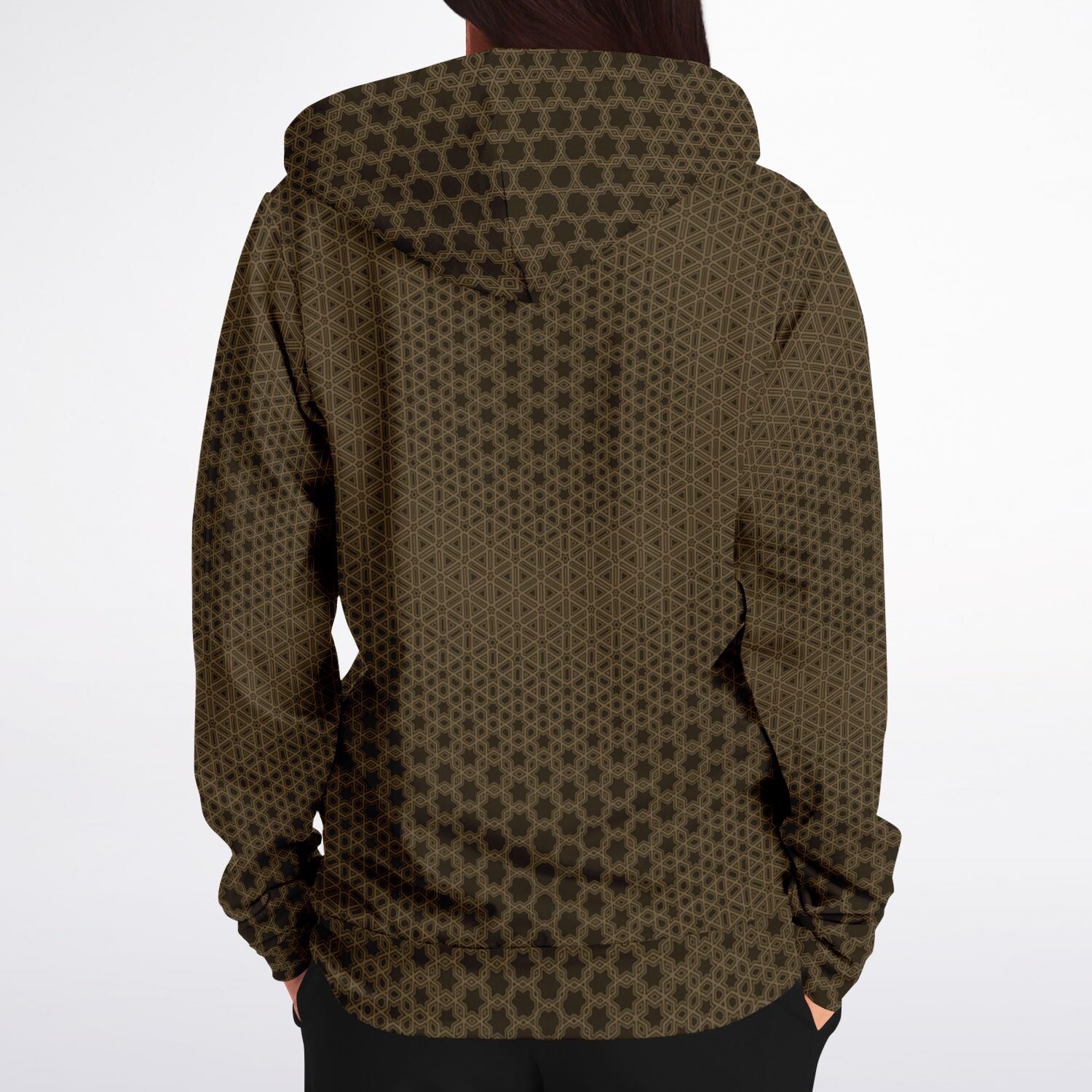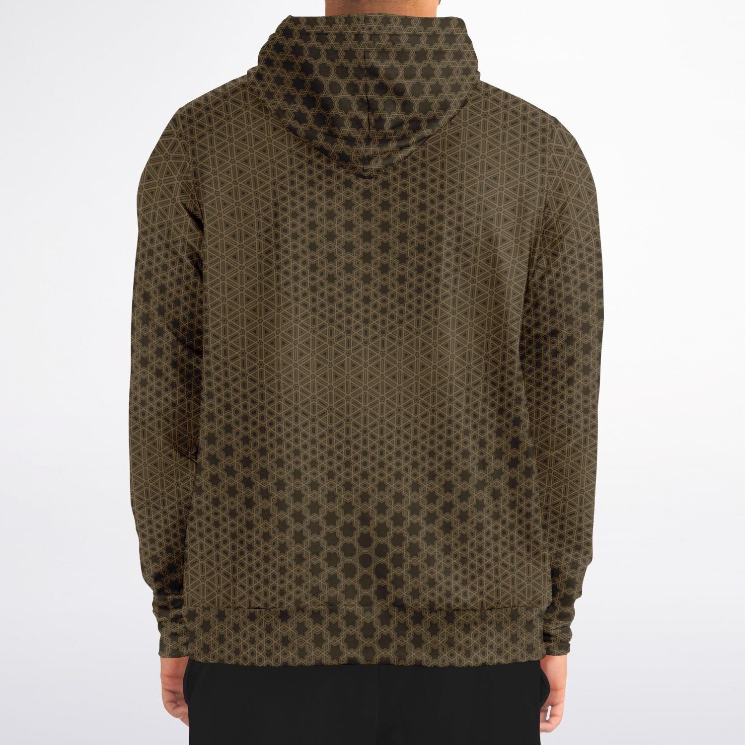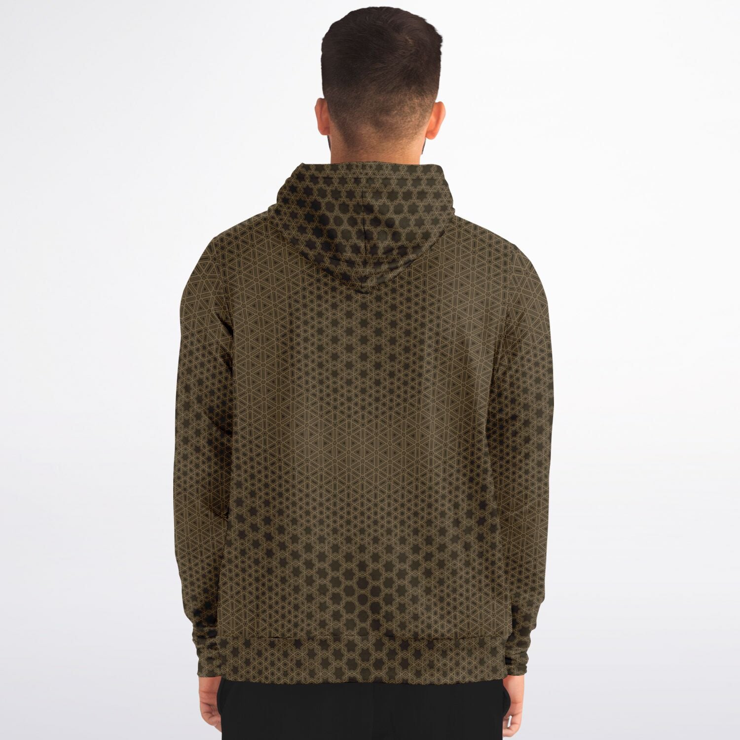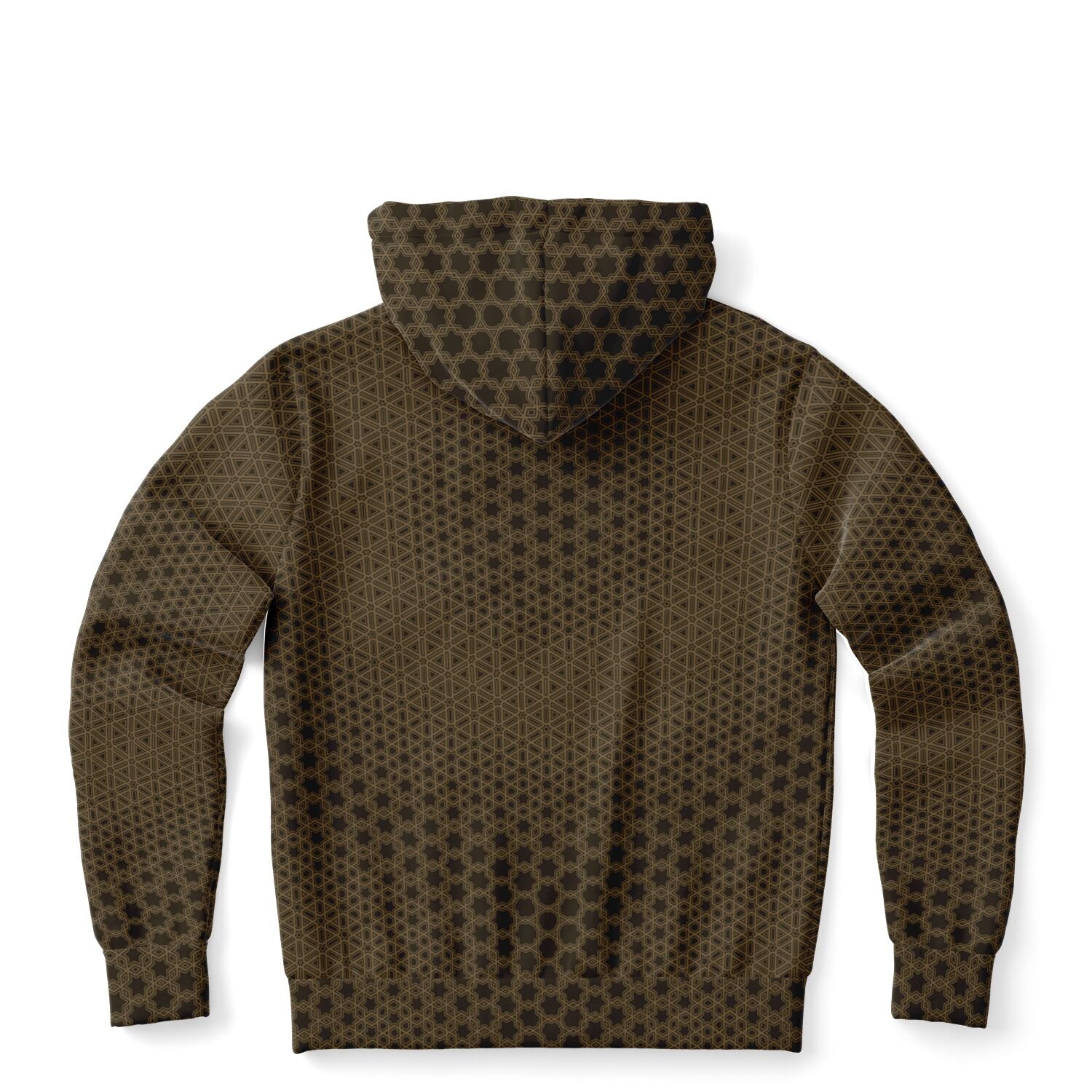 Each panel is individually printed, cut, and sewn so the geometry flows cleanly across the garment with no breaks or distortions. Soft microfleece lining on the inside makes this easy to throw on, whether you are dancing, travelling, or exploring expanded perception.